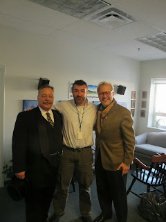 Pictured: Joe Wiegand (President Roosevelt), Tom Porter (Reporter, Maine Public Broadcasting Network), and Michael Maglaras (Filmmaker) |